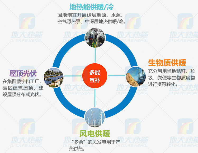 地?zé)?/span>+(風(fēng)能、太陽能、氫能、儲(chǔ)能、水能、生物質(zhì)能等)新能源,根據(jù)因地制宜、多能互補(bǔ)實(shí)現(xiàn)能源綜合開發(fā)利用。