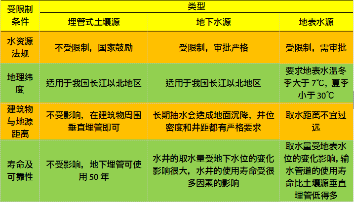 地大熱能專家介紹:地源熱泵空調系統(tǒng)的設計,主要包括兩大部分:一是建筑物內的水環(huán)路空調系統(tǒng)的設計;二是地源熱泵空調系統(tǒng)的地下部分的設計,即地下耦合熱泵系統(tǒng)的地下熱交換器、地表水熱泵系統(tǒng)的地表水熱交換器,地下水熱泵系統(tǒng)的水井系統(tǒng)設計。下面我們對三種地源熱泵系統(tǒng)形式進行對比分析,如表1所示。