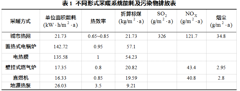 1)不同形式采暖能耗及污染物排放對(duì)比