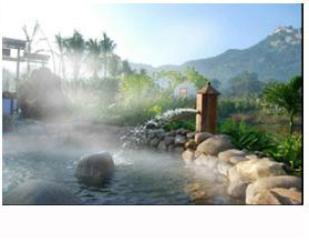 河南省欒川九龍山溫泉風景 九龍山溫泉泉水恒溫69.5℃,時流量56噸,水中富含鉀、鎂、鈣、鍶、鋰等27種礦物質(zhì),微含惰性氣體氡和放射性元素鐳,對風濕、類風濕、心腦血管病后遺癥及婦科、皮膚科常見病的浴療效果顯著,被譽為中原第一泉。