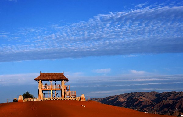 特殊的地理環(huán)境孕育了豐富的旅游資源,在這里,可以看到極具歷史積淀意義的4公里長(zhǎng)的明代古長(zhǎng)城遺址的宏偉景觀;可以站在湖畔觀賞著多達(dá)15種的沙漠生態(tài)魚和136種鳥類,其中黑鸛、大天鵝、金雕分別屬于國(guó)家一、二級(jí)保護(hù)動(dòng)物;可以在水上樂園與湖水親近;可以在遼闊的沙漠草原中縱情馳騁、在金沙島紫色的花海中徜徉;可以在永安寺里尋找片刻的寧?kù)o,在五彩池畔與荷花仙子心靈神匯。騰格里湖沙漠濕地旅游區(qū)溫泉猶如沙漠里的藍(lán)色水晶,如詩(shī)如畫的旖旎風(fēng)光,看著格外悅目。