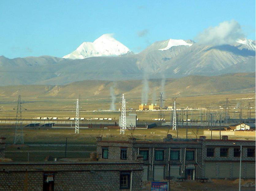 羊八井,即羊八井鎮(zhèn),位于西藏拉薩市西北91.8公里的當(dāng)雄縣境內(nèi)。熱田地勢(shì)平坦,海拔4300米,南北兩側(cè)的山峰均在海拔5500~6000米以上,山峰發(fā)育著現(xiàn)代冰川,藏布曲河流經(jīng)熱田,河水溫度年平均為5℃,當(dāng)?shù)啬昶骄鶜鉁?.5℃,大氣壓力年平均為0.06兆。附近一帶經(jīng)濟(jì)以牧業(yè)為主,兼有少量農(nóng)業(yè)。青藏、中尼兩條公路干線分別從熱田的東部和北部通過,交通尚為方便。
