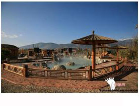 云南下關(guān)溫泉風景明童軒《德勝關(guān)溫泉》詩云:蒸蒸本元氣,澡雪人爭浴。雖無澤物功,遠勝貪泉屈。大理下關(guān)溫泉在山谷之中,背依附者摩山,峭石噻巖壁立,面臨大理西洱河岸,河水洶涌奔騰;庭院之中,設有大理亭閣游廊,遍植花木,四季花香,環(huán)境幽雅,景色宜人,下關(guān)溫泉是人們休假療養(yǎng)的場所。